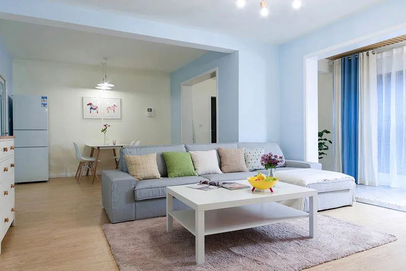 浅蓝色,介乎蓝色和青色之间,为人所知的一种淡色。这种清爽的颜色也越来越多的出现在家装中,特别是想要营造夏日清凉家居的人,各种蓝便是必不可少的选择。碧蓝碧蓝的色调让人的心灵也宁静而高远起来。将居室以蓝色主色调,同时搭配白色等冷色,氛围或知性、或妩媚、或浪漫,都会让你浮燥的心灵由此平静,清爽雅致的蓝白配,最是显得纯净明媚。