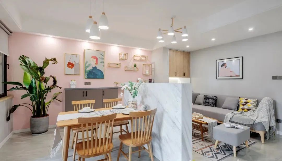 白色作为百搭色,不仅可以搭配多种纯色,同时也可以通过各种杂色来组合,同样是干净的搭配,整体空间打造出一种极简风,也没有太过绚丽的颜色,简单的搭配也能打造出舒适感,更符合夏天的氛围,为整个空间带来了无限活力!