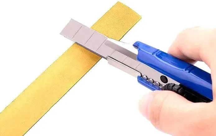 当艺术涂料效果完成时,用美工刀沿着涂料和美纹纸之间的边缘轻轻划动取下美纹纸,避免拉扯而导致涂料脱落。